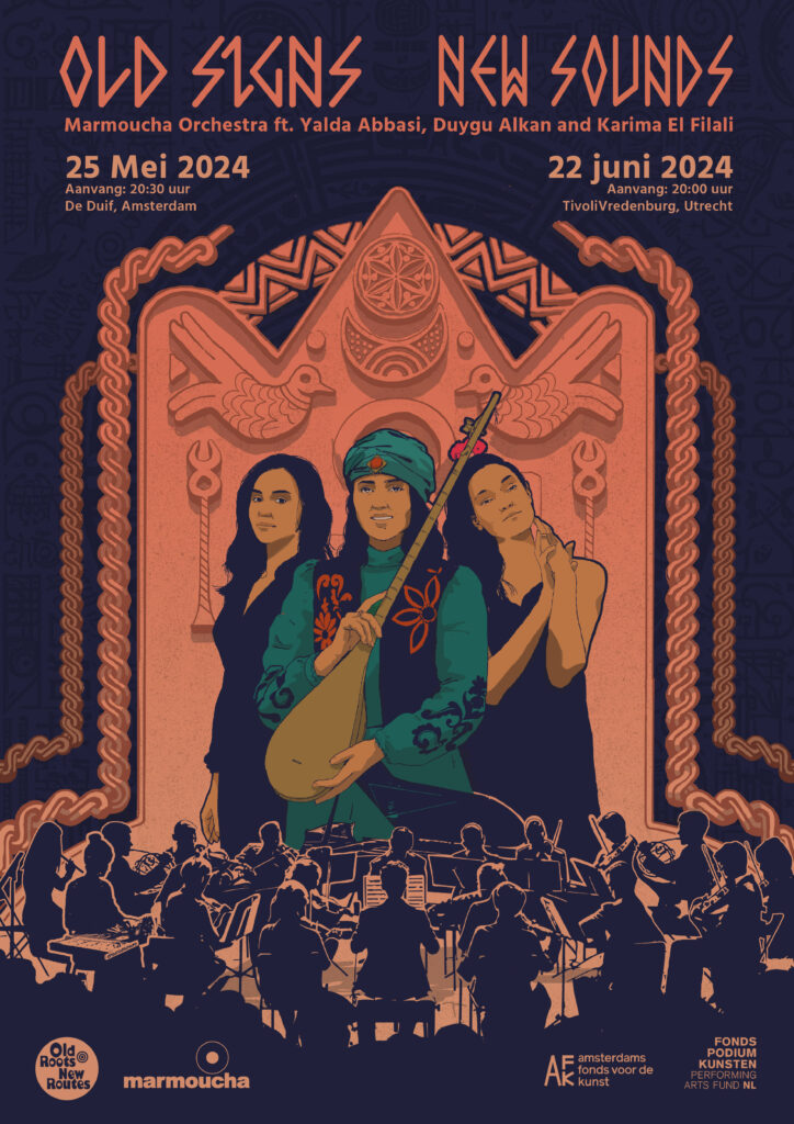 Ontdek samen met het Marmoucha Orchestra de tijdloze reis van “Old Signs, New Sounds”, waarbij historische rijkdom en moderne vibraties samenvloeien. Dit bijzondere concert tijdens Old Roots New Routes, met de prachtige stemmen van de getalenteerde vrouwelijke vocalisten met Marokkaanse, Turkse en Iraanse roots, presenteert een fascinerende mix van traditionele volksmuziek uit deze regio’s en vernieuwende composities. De muzikale diversiteit uit Marokko, Turkije en Iran wordt belicht samen met de culturele invloeden van de antieke Mediterrane beschavingen, eeuwenoude geschriften waar de legendarische godinnen Ishtar, Anahita en Tanit opnieuw van zich laten horen.
